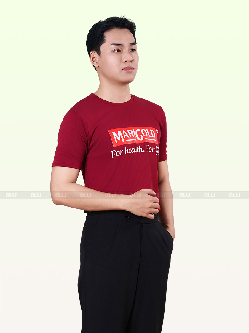 Áo thun cổ tròn mang sắc đỏ đậm đầy thu hút và ấn tượng, toát lên vẻ năng động và cá tính. Thiết kế tối giản với kiểu dáng basic, dễ dàng phù hợp với nhiều phong cách và hoạt động khác nhau. Điểm nhấn nổi bật là dòng chữ “MARIGOLD® For health. For life.” được in pet màu trắng sắc nét trên nền đỏ, tạo sự tương phản mạnh mẽ và truyền tải thông điệp thương hiệu một cách rõ ràng, thu hút ánh nhìn.
